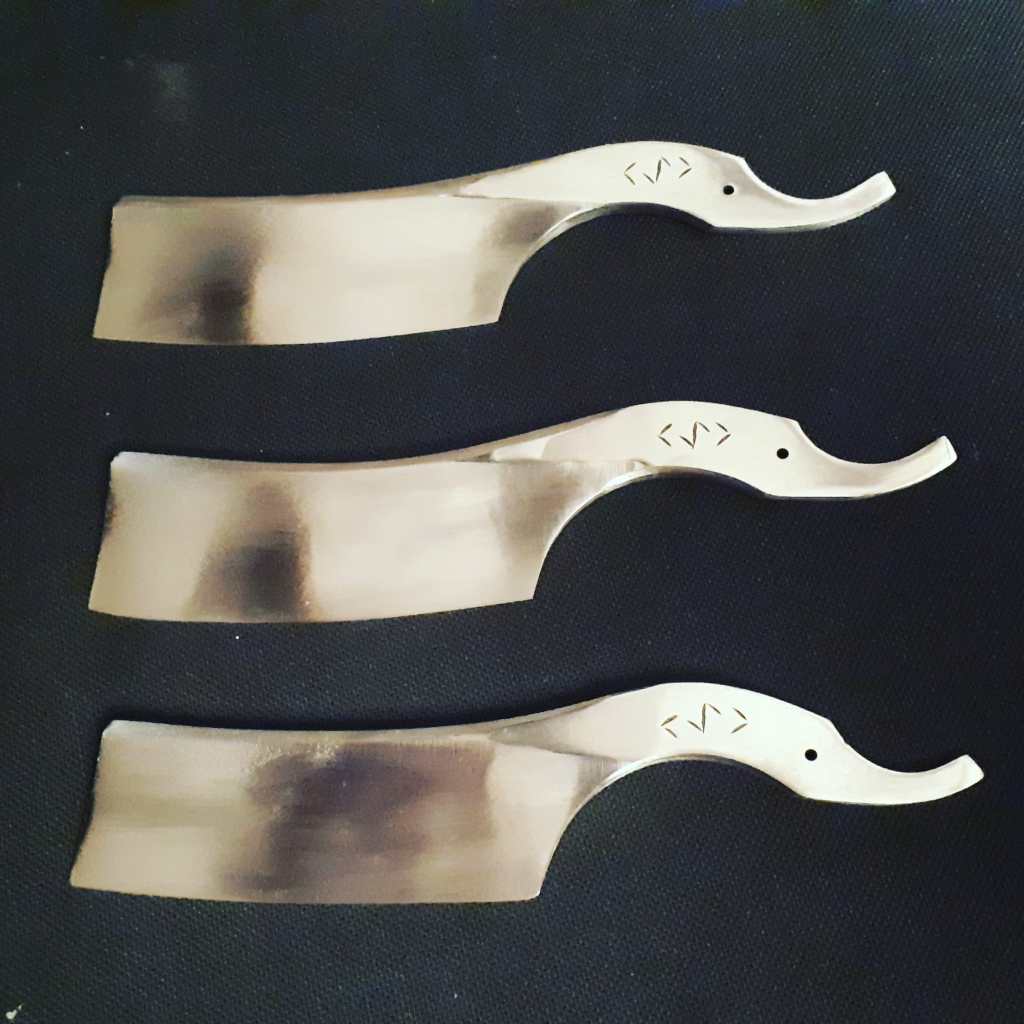November 22, 2020brunovandoorenLeave a Comment on New razors in progress New razors in progress Ready for final sanding and then etching. Top to bottom: wootz, tamahagane and damascus. Share this: Click to share on X (Opens in new window) X Click to share on Facebook (Opens in new window) Facebook Like Loading... Related